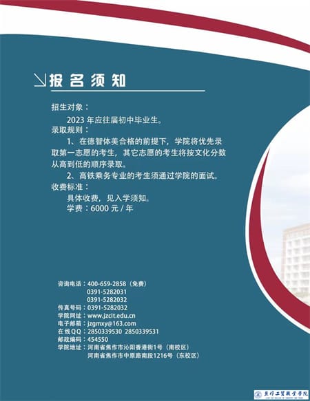 焦作工贸职业学院2023年五年制招生简介